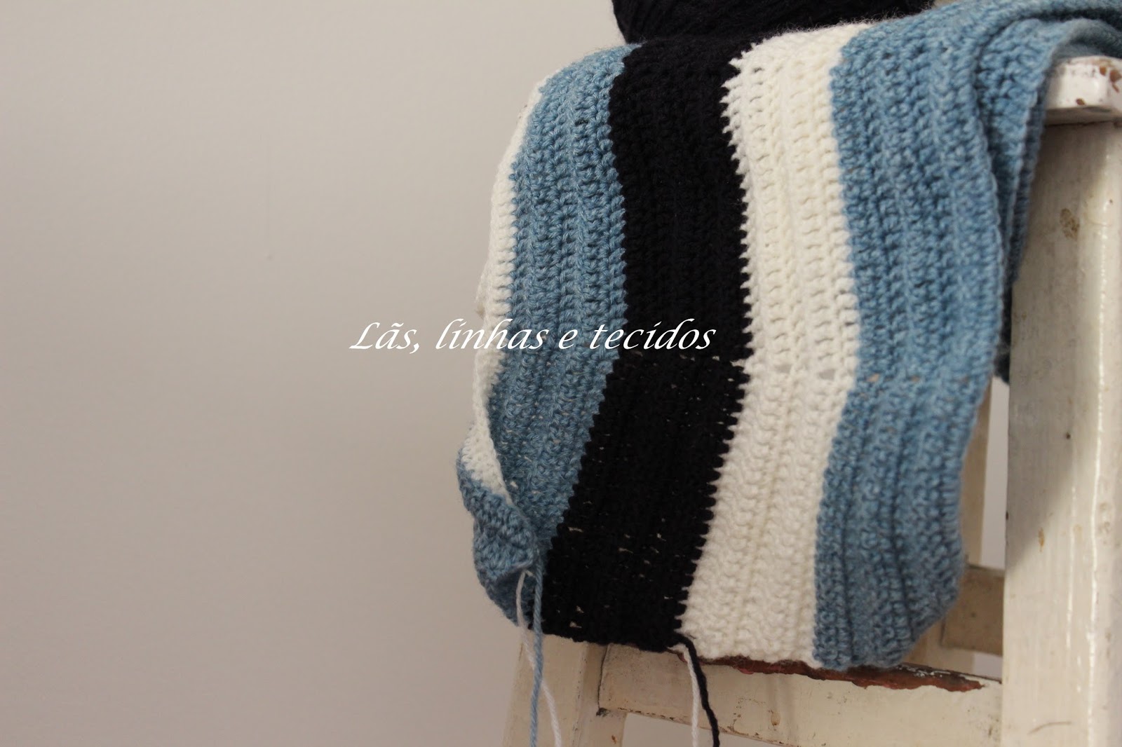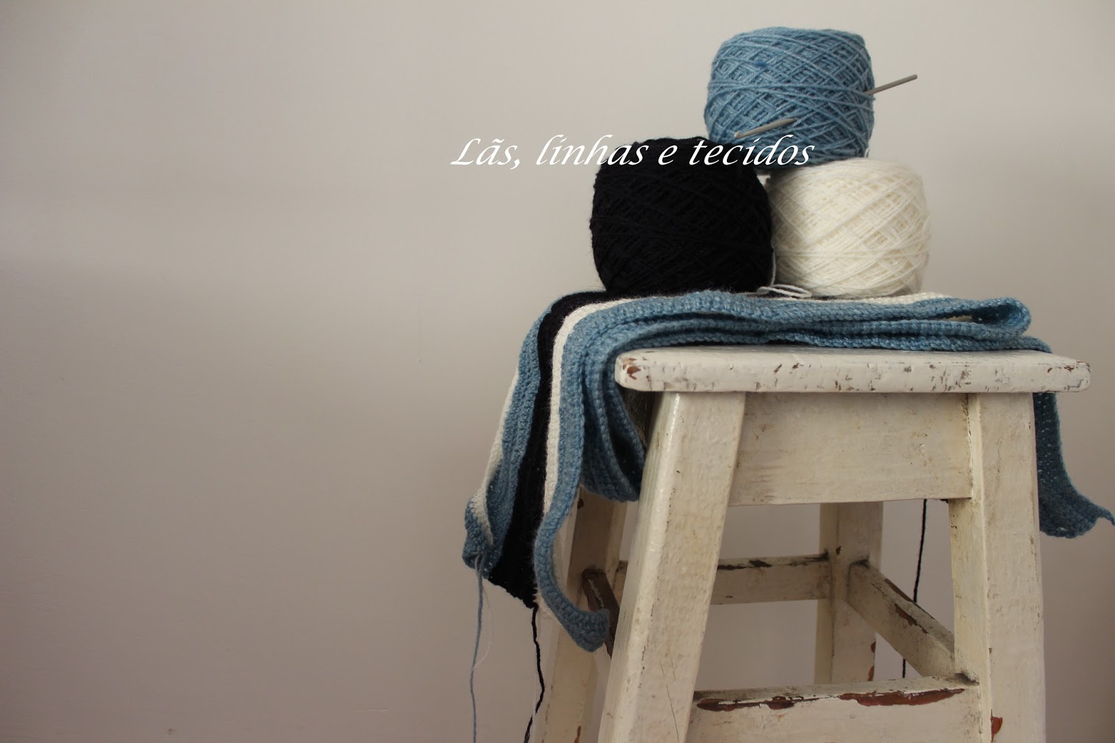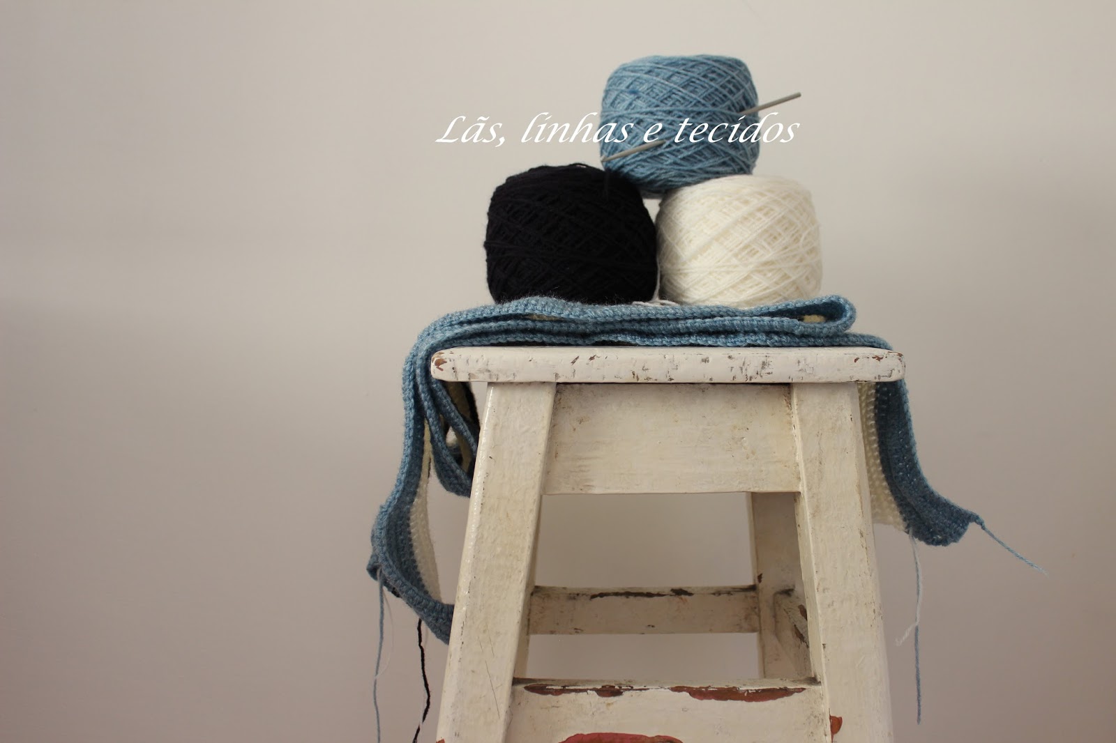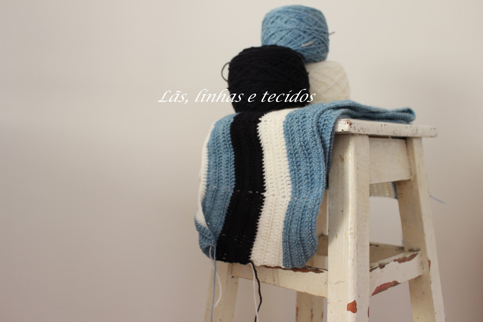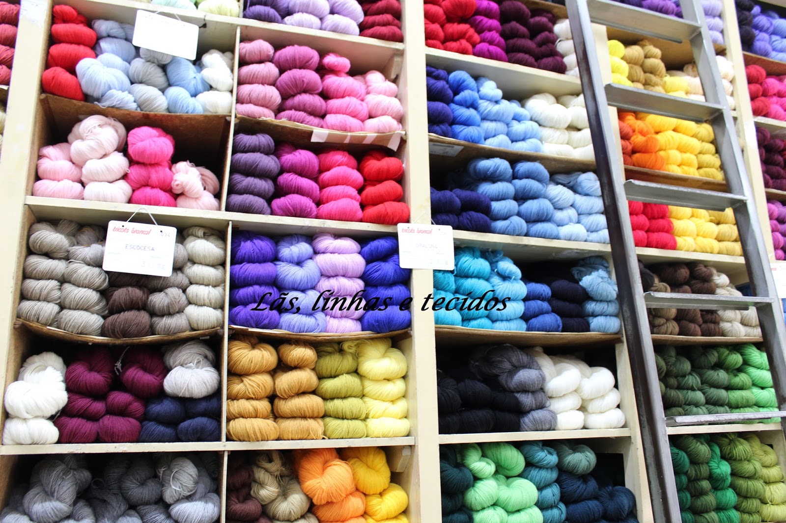 Apesar te ter várias mantas de crochet e tricot, nenhuma tinha as cores pretendidas, pelo que tivemos que ir até à Brancal da Rua dos Fanqueiros e escolher as linhas para começar outra manta (mais um trabalho começado). Trouxemos fio Dralon 4, com 50% de lã e 50% polyester. O modelo já tinha sido escolhido por ela e é igual ao da nossa