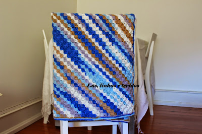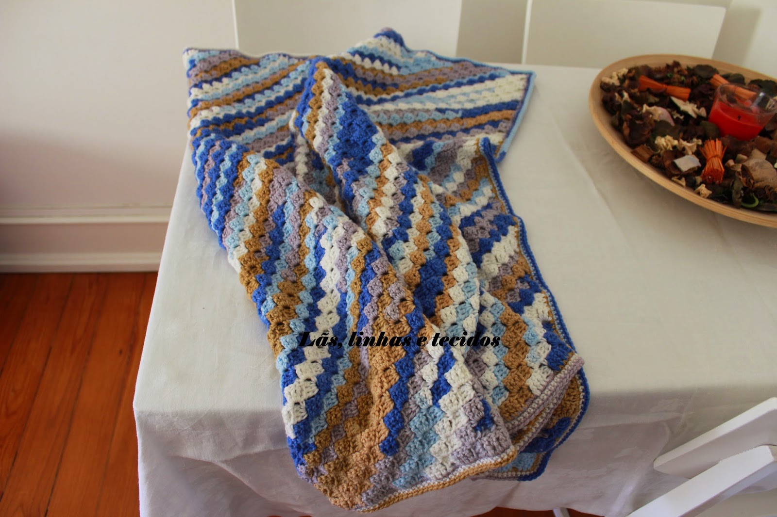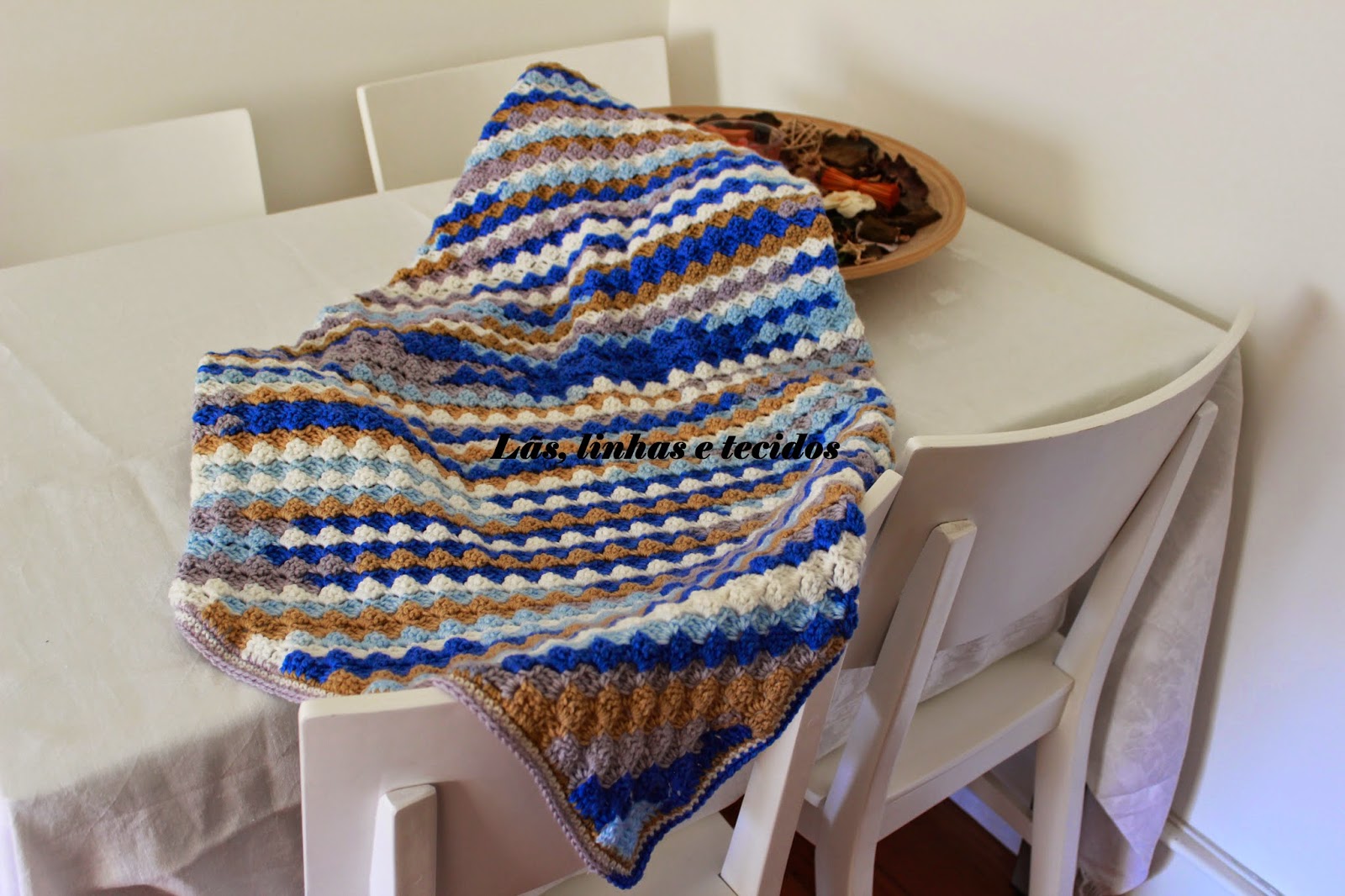O ponto é muito fácil de fazer e também bastante rápido. A manta ficou pronta em poucos dias mas não tenho de momento nenhum bebé a quem a oferecer pois apesar de ser grandinha e dar para tapar as pernas, nós gostamos de mantas grandes para o sofá.