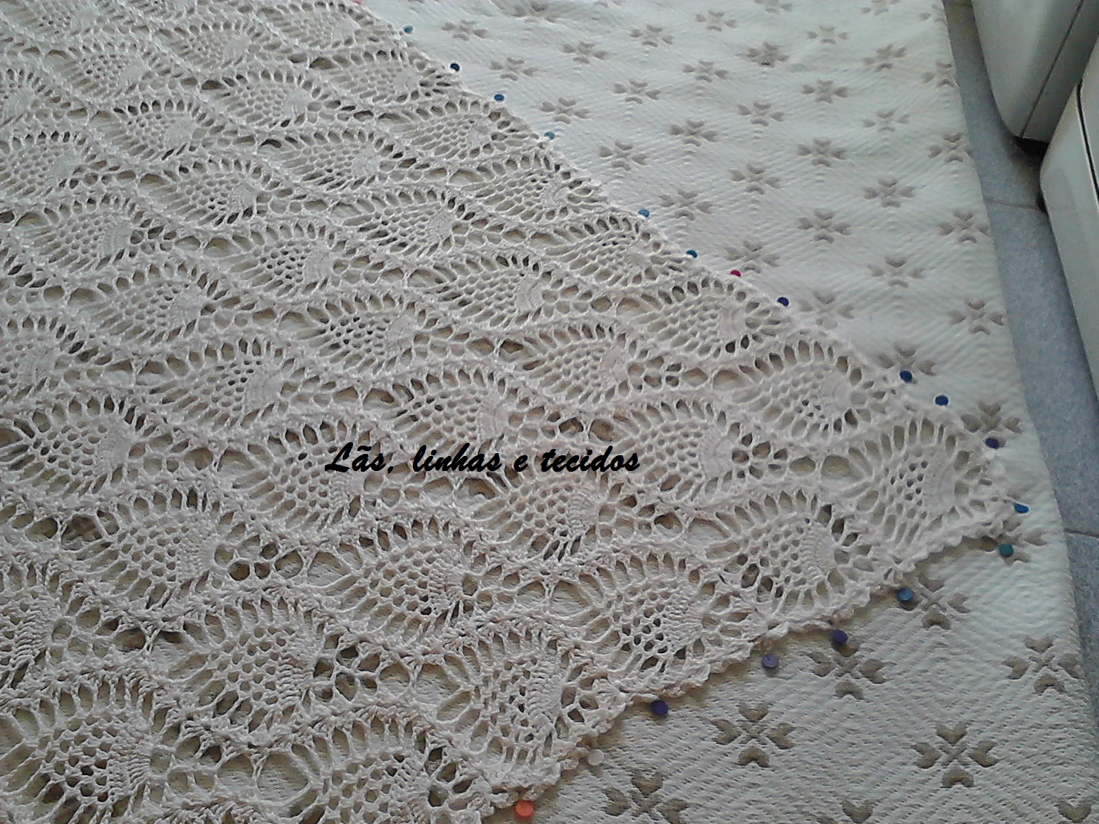 Fátima e não resisti a fazer um xaile. O modelo está muito bem explicado, requer alguma atenção no início, mas depois de entrarmos no esquema, não é muito difícil.